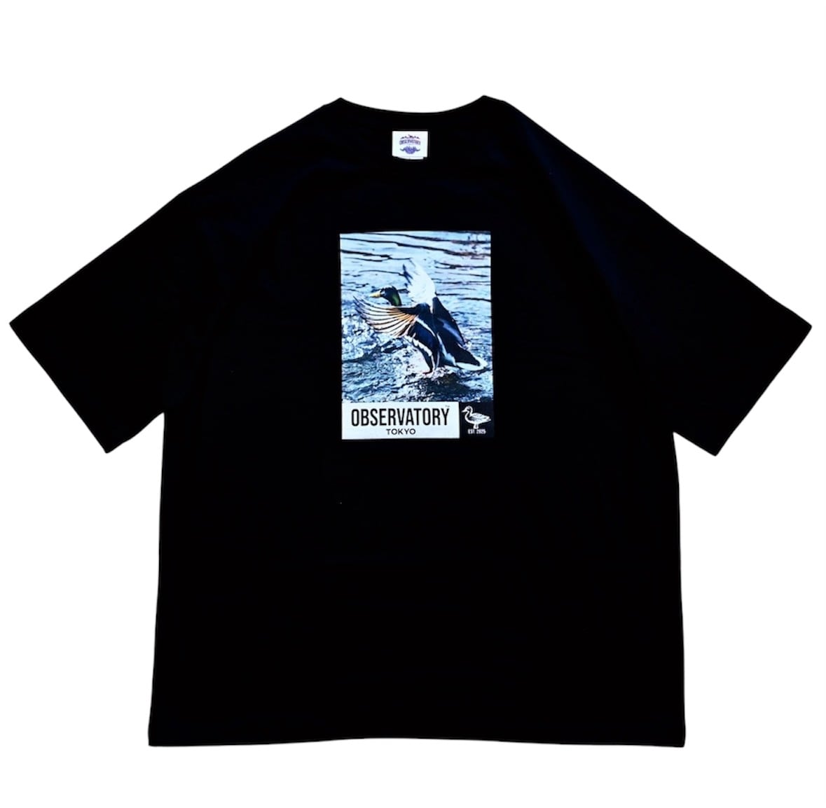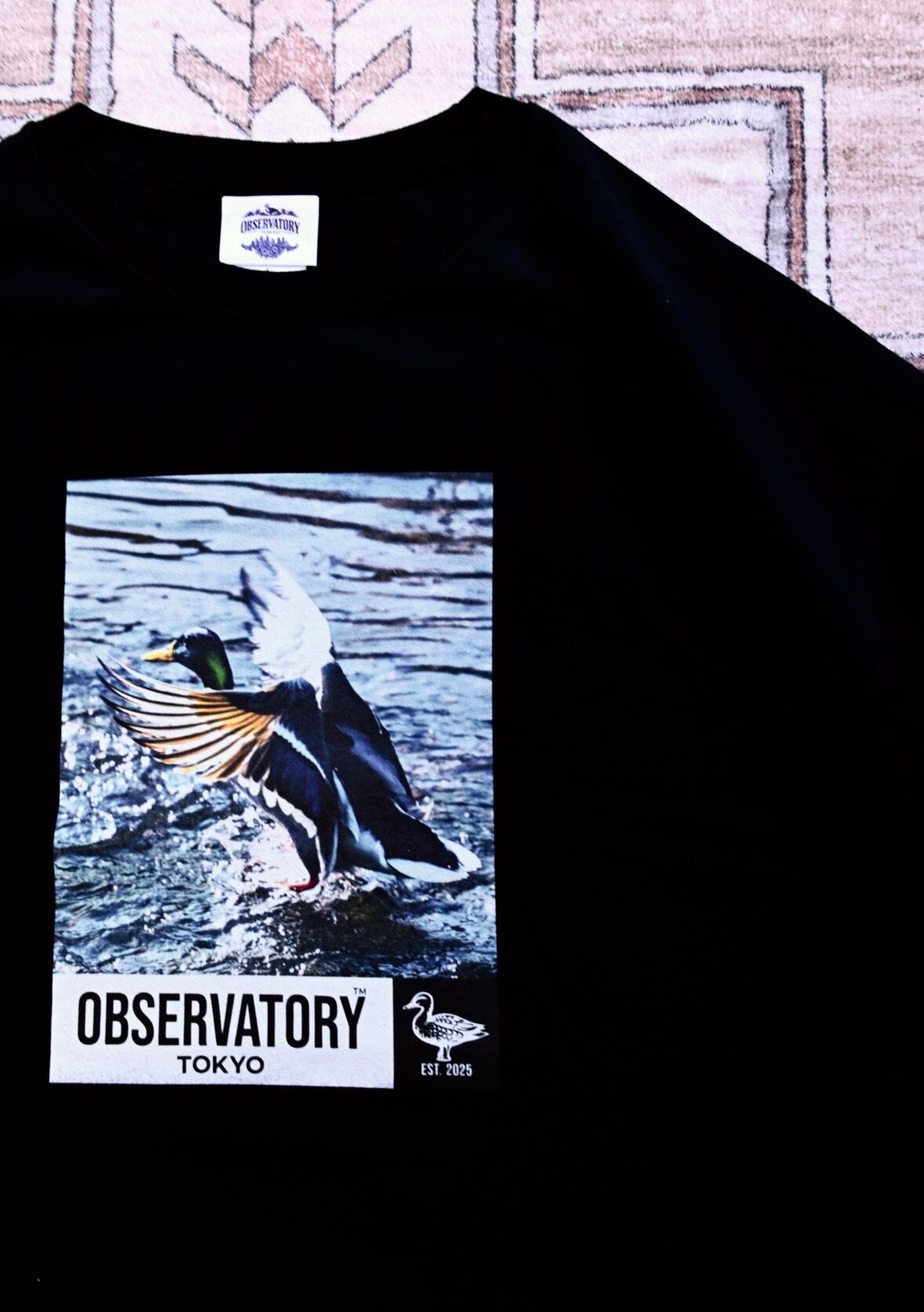 その「翼鏡(Speculum)」と呼ばれる、マガモ特有の鮮やかなコバルトブルーを、グラフィックとしてTシャツに定着させました。